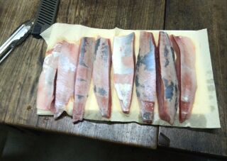 お魚隊長が皮を剥ぎ、小骨をとると、サクの出来上がり。