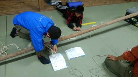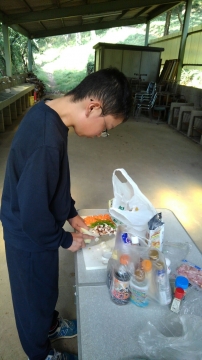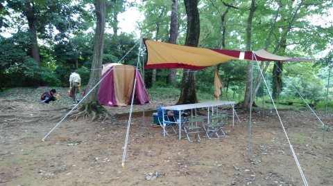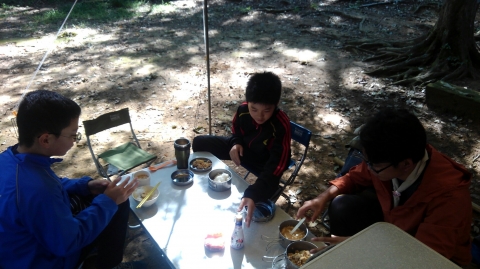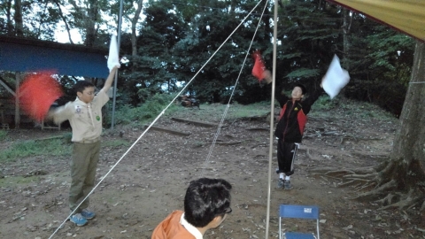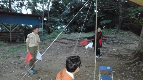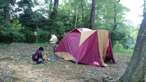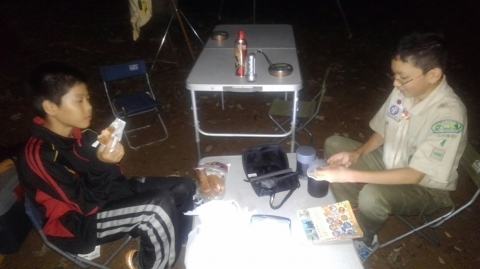 9月と言えば、キャンプに最適な秋のキャンプ。そしてscout達の一年のはじまりのキャンプは基本のキャンプ。そして、今年の年間テーマは「城」 。(-ω-;)ウーン。平成29年9月23日(土)新班長体制になっての、活動だ!!!そんでもって、参加scoutは2名からだぞ。まずは、集合。でも隊長は私用により遅れてきました。 受け入れは、清〇副長と〇太副長だ。がんばってね。 まずは、ロッヂの清掃。続いて、北城にドームテントとフライの設営。キャンプ道具の準備。2人しかいいないから大忙しだ。 続いての活動は、手旗の練習。進級制度が変わり、手旗は必須科目に。 晩御飯はお弁当。 今日の夜の活動は、ロープワークとスカウトソング。 スカウトソングをスマホでチェック 続いて来月以降の隊活動の計画(説明)そして就寝だ。平成29年9月24日(日)今日は天気がいいぞ。楽しい活動になるかなぁ~起床時間は何とか守れたかな。今日の朝食は、炊き込みご飯、味噌汁、卵料理のはずだったのにΣ(゚д゚lll)ガーン 炊き込みご飯が嫌いな奴が潜んでいた。ということで、白飯、味噌汁、卵料理(炊き込みご飯の材料を混ぜて)でこんな感じ。問題はここから起きた。まずは、薪に火が付かない。なぜならスカウトはマッチというものを持ってきていなっからだ。やはり、基本から教えなければならないのか~。 火おこしを副長がフォロー、しかし、朝食が出来上がった時間が予定の時間を2時間も遅れ、片付けまで終わった時間が10時半を過ぎていた。今日の活動は、朝食と昼食になりそうだ。 そんなことはしたくない。とりあえず、1年間活動の材料、例年の作業の竹伐りを実施。 北城までも運び終えると、昼食の準備。 今日のメニューは、チャーハンと中華スープ。 これは、しっかりご飯を炊かないとならにないのだ。朝食の二の舞はごめんだぜ。何とか出来たのは、二種類の味のチャーハン?!?!?!まあ、最後の味付けは各自でということで・・・・ 隊長は、ウスター味のチャーハンがイケタ。 何とか、1時間遅れで解散できたぜ。scout : 2名Leader : 3名