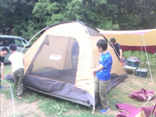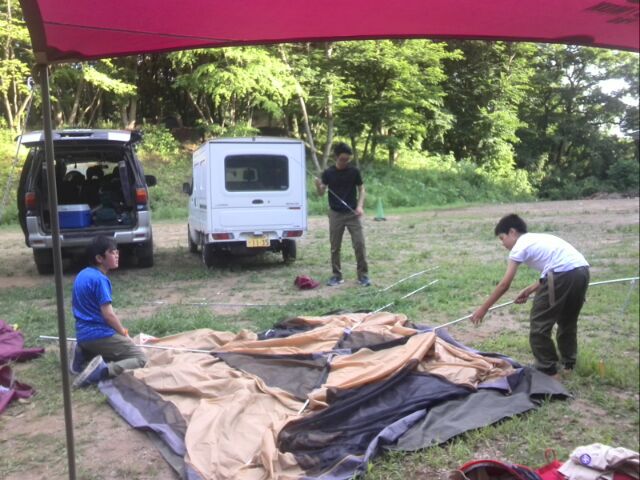 その後、キャンプ場に戻り、テントの設営。