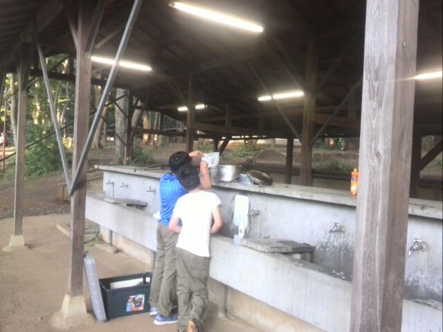 食後は、お風呂へ行きます。キャンプ場に併設されている合宿所のような施設があるため敷地内は、高校生の集団で盛況でした。