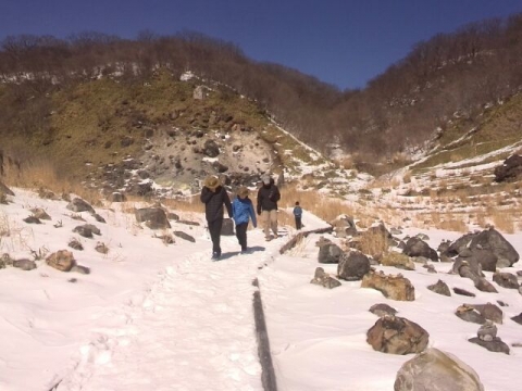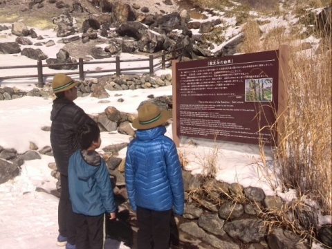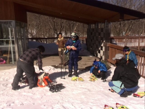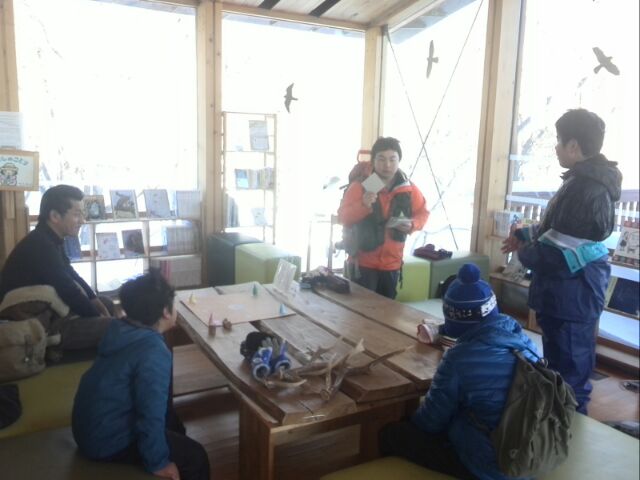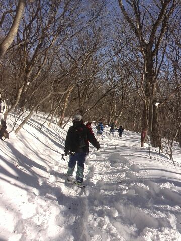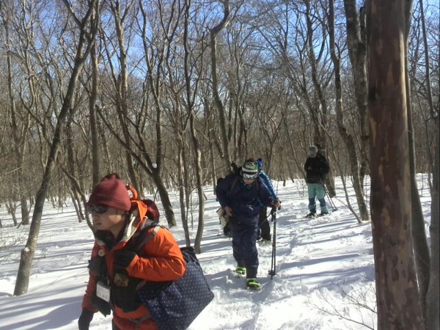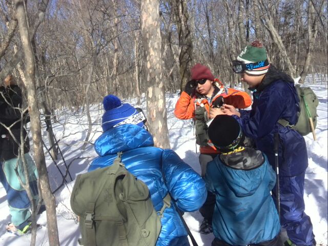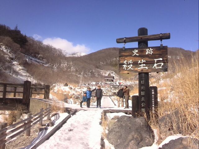 暦の上では、もう春ですね。・・・・・・・、そんなのウソだー!!まだまだ寒いぜ。冬を満喫すのはこれからです。そんなこんなで、前回の続きの決算プログラム。スキー&カンジキハイキングの計画をやるのだ。平成29年2月4日(土)今回のテーマは「雪水」です。(^^♪ 雪は~解けて川になって 流れていきます 宿泊施設は「なす高原自然の家」、スキー訓練は「マウントジーンズ那須スキー場」、カンジキハイキングは「那須平成の森」です。冬のプログラムの難しいところは、雪不足と悪天候になるとほぼできないことです。いつもハラハラ。でも隊長の日頃の行いのおかげか、天気はGood! まずは、集合だ。いつものJR佐野駅北口駐車場。電車と路線バスを乗り継ぎ、目的地まで行ってもらうのだ。切符の購入もscout自らやってください。今まで、どれだけの電車を使った活動をしてきたことか? 保護者にお別れをして、いざ電車に乗り込むのだ。 小山駅、宇都宮駅で乗り継ぎ、無事に黒磯駅まで到着の一報を聞き、隊長も一安心。さすがにscout2人だけでは心もとないので、清〇副長を同行させているのだ。 黒磯駅からは、東野交通の路線バスで那須湯本温泉まで行き乗り継ぐのだ。 隊長が、一足先に那須に到着した時の一コマ温泉神社の山門で参拝し、殺生石(九尾の狐伝説)を見学。 ここからは、リーダーの車に乗車して、那須平成の森フィールドセンターまで数分の移動。 受付を済ませ、昼食のお弁当を食べて、やっと一息ついた感じになった(隊長)。館内を見学カンジキハイクの準備 本日の、インストラクター長田さん(自称・他称「ムーミンさん」) 早速、外に出て新型カンジキの感触を味わうのだ。スノーシューとカンジキの違いなどの説明をうけ、いざ出発。 (-ω-;)ウーン、これはいけそう。 ここ「那須平成の森」は、当時皇太子殿下であった昭和天皇の御成婚後の御静養の場として大正15年に設置された那須御用邸の敷地の一部で、平成20年に天皇陛下御在位20年という節目の機会に、御用邸用地のおよそ半分にあたる約560haが宮内庁から環境省へ移管されました。平成23年5月22日に日光国立公園「那須平成の森」として開園を迎えることとなりました。 木の幹に触れてみる。