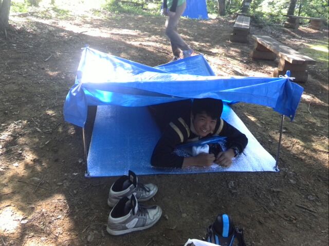 今回はビバークキャンプです。自分たちの能力を全開にして自分だけのテントを作るのさ。
