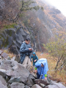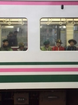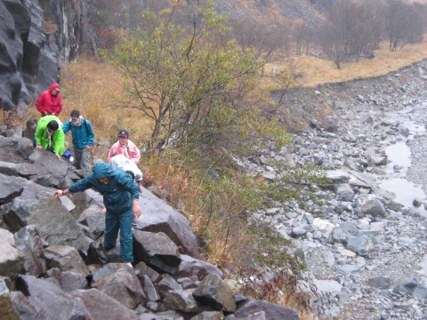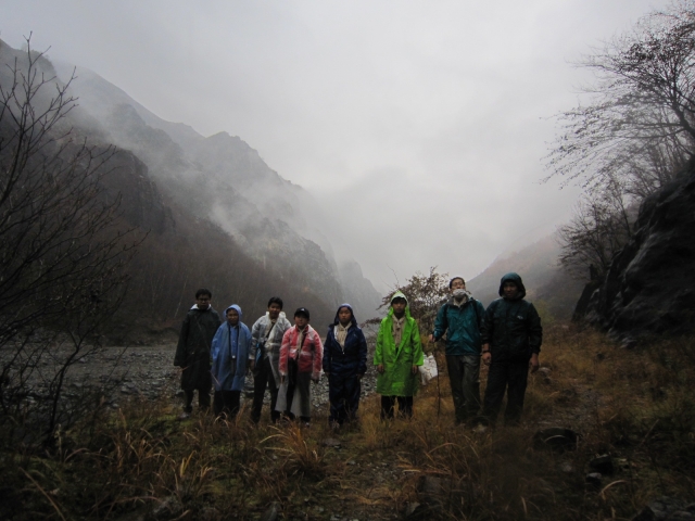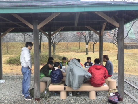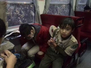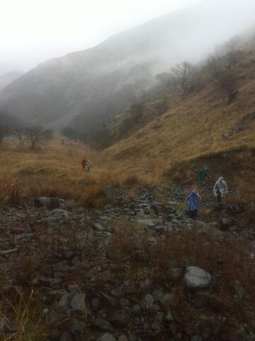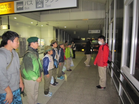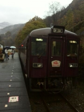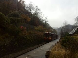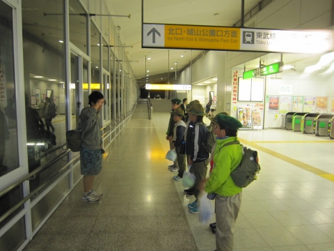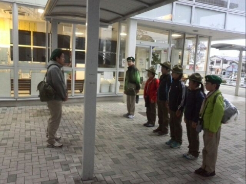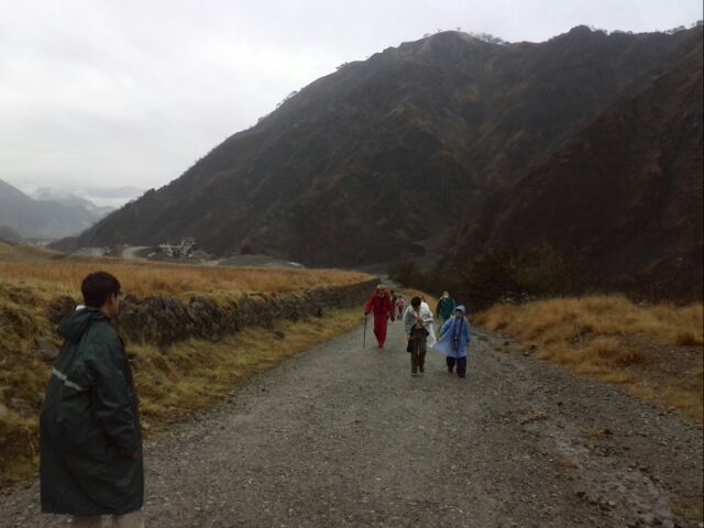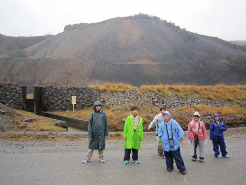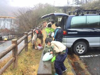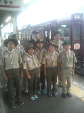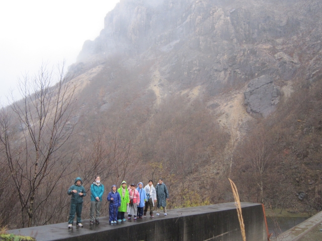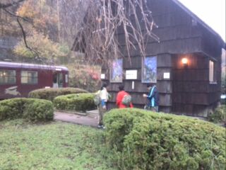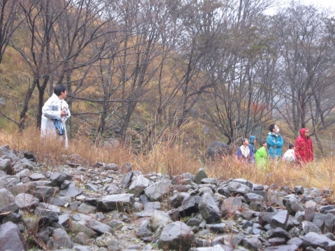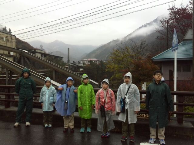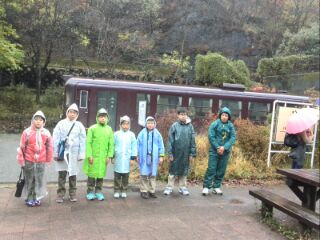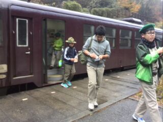 秋も深まってきました。紅葉の季節、ハイキングには最適の季節のはずです・・・。平成27年11月8日(日)今月の隊集会テーマは「タカの眼」です。獲物を探すタカの眼で、ハイキング中の観察をしっかりやってほしい。まずは、集合だ!今回は、JR佐野駅南口にの広場に集合の予定でしたが、ラジオ体操の団体が先に集合していたのと、雨がぱらついていたので、端の方でひっそりと開会式をやりました。 新入隊員が入ったおかげで、参加者が多いとやっぱり楽しいです(隊長:談)。しかし、天気予報では一日雨。空はところどころ厚い雲がかかっています。果たして山の天気はどうなっているか?!今回の目的地は、田中正造に縁のあるあの足尾の山奥、「松木渓谷」に挑戦です。実は、このコースは、隊長1年目の秋にハイキングプロジェクトで訪れたところです。前回はのゴール地点は、もう少し手前のところでした。8年前とほとんど変わっておりませんが、やはり少しづつではありますが、植樹が進んでいるようでもあります。 scout達は電車を乗り継ぎ、わたらせ渓谷鉄道に乗り終点「間藤駅」に向かう予定です。今回は、RVscoutの島〇君が引率してくれることになりましたので、心強く思っておりました。 が、事件は起こりました。隊長は、電車での引率ではなく、マイカーで先行して、快調に桐生市内を通り過ぎ、もうすぐ大間々市内に入ろうとしていたところ、隊長の携帯に怪しいコールが.........。車を止めて携帯に出ると、それは茂木班長からでした。 「隊長、乗り遅れてしまいました...。」隊長「.........。」どうやら、切符の購入に手間取ったのと、みんながトイレに行ったこと、さらにわたらせ渓谷鉄道は、発車のチャイムが鳴らないことが重なり、気が付けば、気動車は動いていたそうな。しかし、隊長は、「では、次の電車に乗って終点の間藤駅まで来てください」と告げ、先に車で間藤駅に向かいました。中〇副長が別動隊で車移動だったため、桐生駅に立ち寄りscout達を励ましてくれました(立ち食いひもかわは美味しかったそうです) 運転手さんと、仲良く記念撮影(おいおい、)ちなみにこの乗り遅れで、約1時間40分くらい間藤駅到着が遅れました。隊長は、時間ができたので草木ダムで写真撮影。 隊長と上〇RV[隊長は、約2時間ほど間藤駅で待機。 やっとscout達の乗った気動車が到着。ここで雨具装着。目的地の地図を渡し、休憩ポイントの銅親水公園を目指すよう指示。 途中、「古河橋」で足尾銅山精錬所の心臓部をバックに記念撮影。 (遠くに見えるのが、精錬所の煙突)銅親水公園では、「足尾環境学習センター」を見学(有料)をし、事前学習をしてもらいました。あっという間にお昼の時間。Leaderたちと一緒にお弁当。今回は、雨宿りができる東屋の下で何とか食べることができました。こういう時は、おにぎりががさばらなくていいぞ。どこでも手軽に食べられるのだ。 ここからは、隊長と中〇副長も雨具を着て、scout達と一緒に松木渓谷を目指すことになります。 隊長を先頭にscout達が歩き、最後尾は副長です。隊長は、少し速足の歩きで副長は遅れているscoutのフォローしながら、周りの景色(野生動物がいないか...カモシカは...)を眺めます。 いたるところに、かつての足尾銅山の遺物が点在しているのをいることができました。 真ん中に鹿。本当は、もっといたのですが、逃げ足が速い。