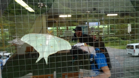 駅舎で大きな蛾を見つけたよ。隊長が子供のころは、唐沢山に行けば必ず会えた