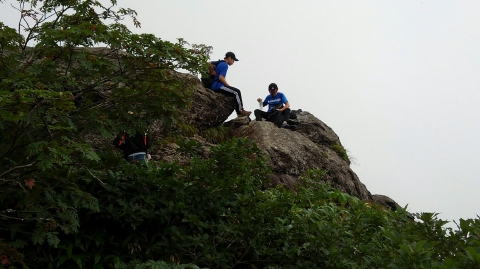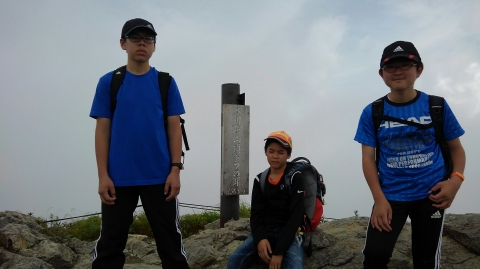 山頂のお宮を参拝し、さあscoutよ!出発じぁ。