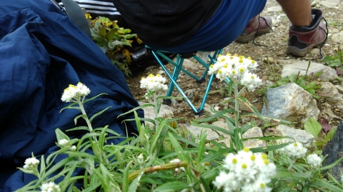 隊長は、殿のため、どうしても写真が後ろ向き。まあ仕方ないので、谷川岳の花の写真でも撮ろう。