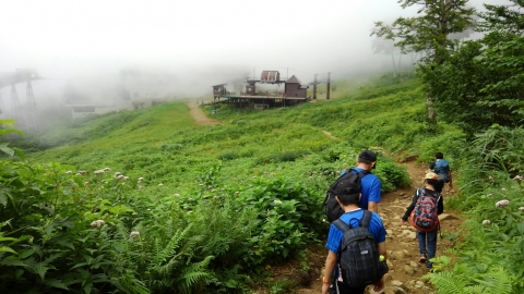 ロープウェイからの眺めは、まずまずで、山頂は雲に隠れていたが、天神平駅に到着。そこから更に、リフトに乗って天神峠へ。