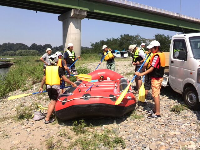 今日は、「那珂川を遊びつくすプロジェクト」の締めくくり、ラフティングによる那珂川の川下り。BS佐野4団初の試みです。