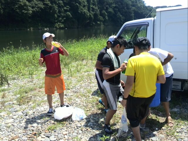 この間にスカウトたちは、地元貢献のために、河川敷の掃除をお手伝い。燃えるゴミと不燃ごみ、川に入ってまでゴミを拾う姿が...素晴らしい