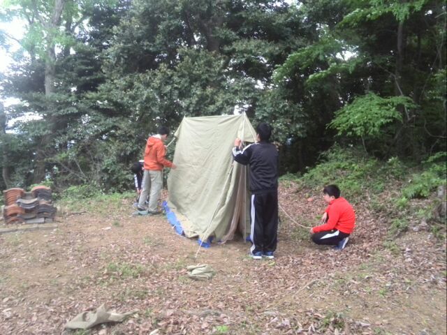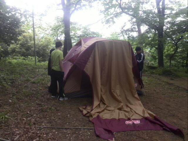 明日の準備で、スカウトが使っているテントを張るのだ。ドームテント、家型テントなど。