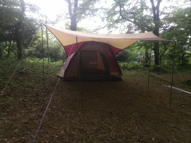 ドームテントは、何度か張っているので何とかなったが、今回はタープと合体バージョン。うまく張れたか?!