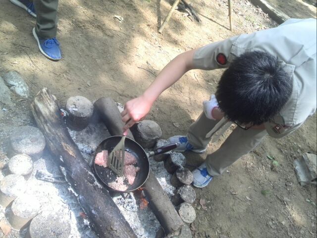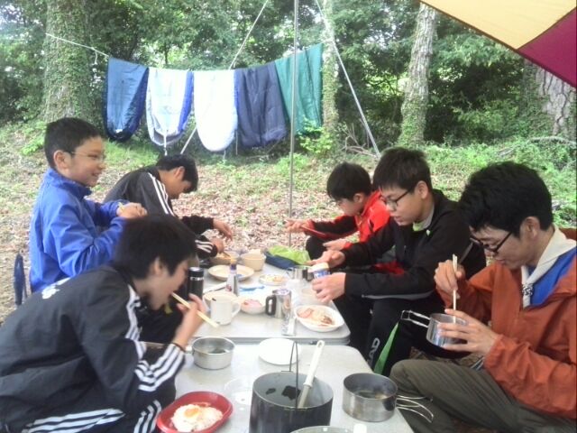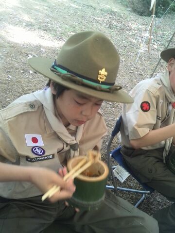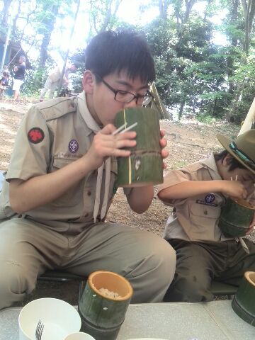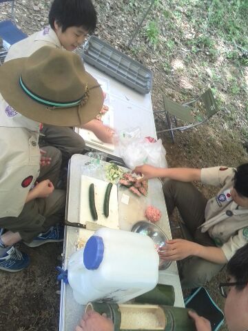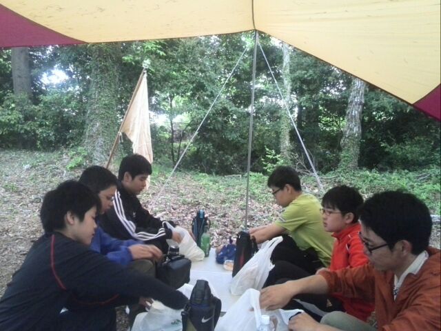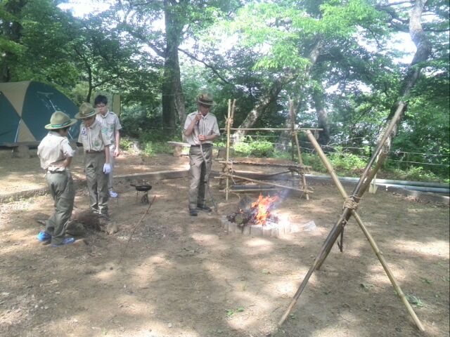 テントや寝袋を干す者、米を研ぎ始める者、食材を切るもの、火をおこす者と手分けして作業するのがscoutだ。