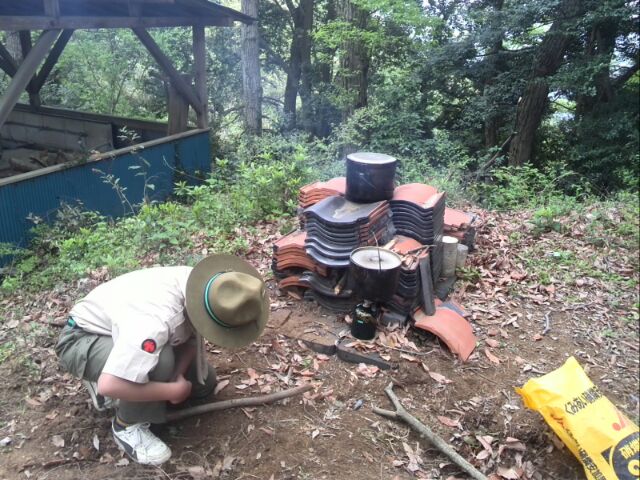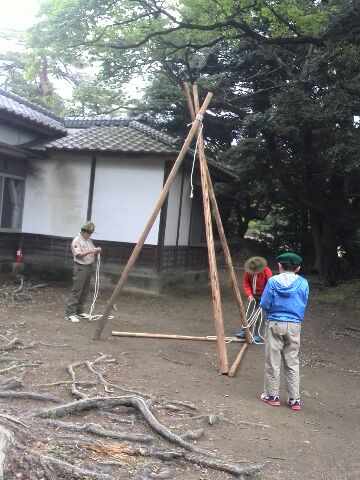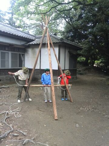 まずは、先月、夜間ハイクの際に挑戦した、三脚の少し大きいバージョンを作成するのだと、隊長から指示されて作り始めたが......。