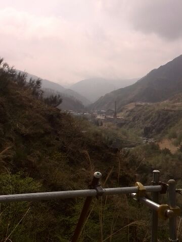 精錬所の煙突が眼下に見える。
