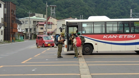 scout達は、洞元の滝バス停まで、荷物を背負って歩くのだ。来た時と逆の道のり。